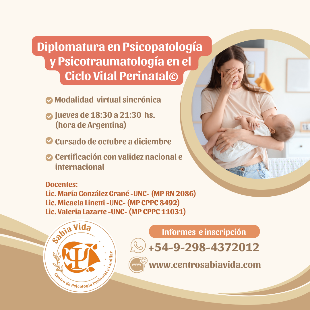 DIPLOMATURA INTERDISCIPLINARIA DE FORMACIÓN EN PSICOLOGÍA DE LA SALUD INTEGRAL PERINATAL©- Edición 2024